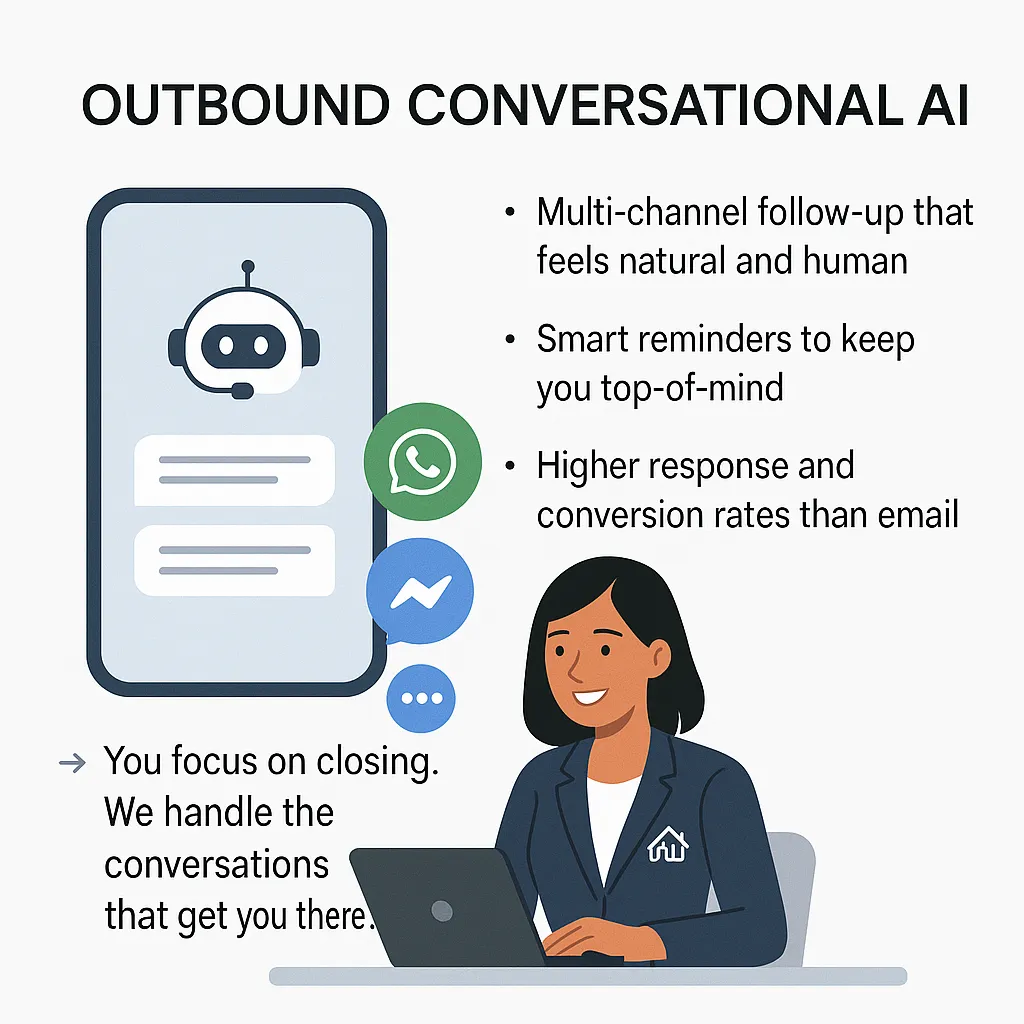 Following up with leads across multiple channels has never been easier. Our Conversational AI automatically nurtures prospects over SMS, WhatsApp, Facebook Messenger, and more—building rapport and setting appointments for you.